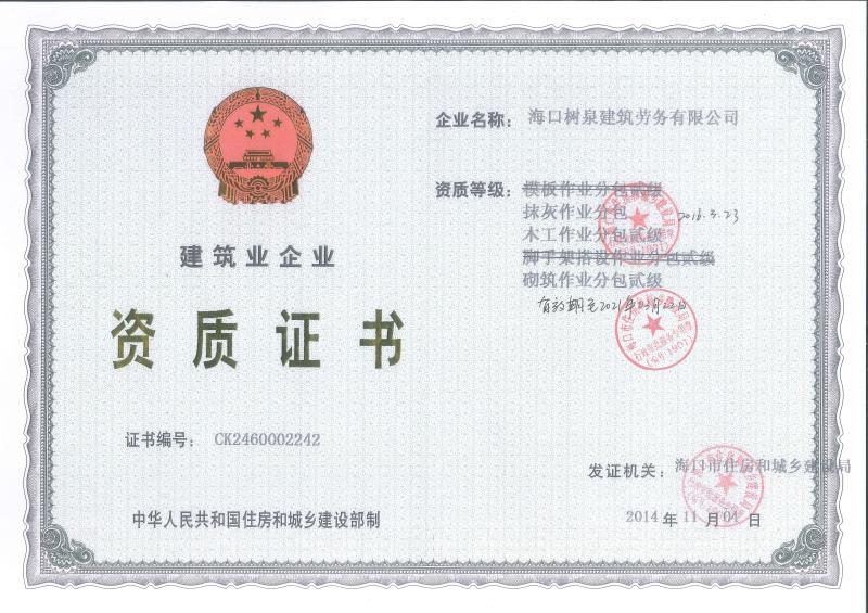 ??跇淙ㄖ趧沼邢薰境闪⒂?011年,公司位于海口,其前身是一家專業建筑施工隊,自2004年即開始在海南從事建筑勞務施工。自成立至今,公司已經擁有一支科學管理、質量過硬、能打硬仗,搶工期的專業隊伍。能獨立承擔大中型工業與民用建筑 、室內外裝修、各類機電設備安裝工程。代表工程有??跒I海華庭、三亞時代海岸T01/02/04/05棟高層、合肥東?;▓@二期、陵水富力灣B區高層、三亞金中海(酒店)、瓊海大印經典花園、海口環球海景大酒店(四星級酒店,在建中)、陵水珍珠大廈(五星酒店)、海口萬達廣場、美蘭機場二期。